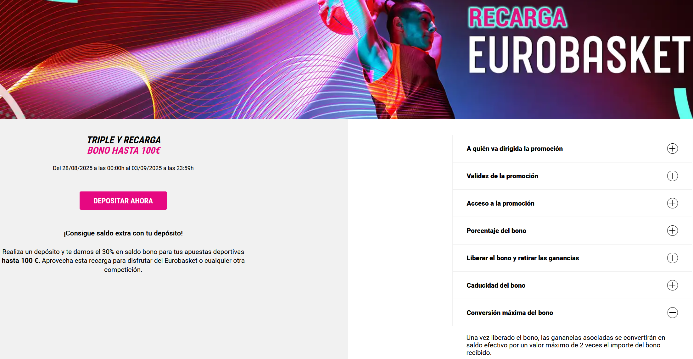 Deberás apostar el valor del importe recibido una vez, pero utilizando exvlusivamente saldo real (no toques el bono), ya que existe el límite de convertibiildad. Esta apuesta deberás realizarla utilizando la modalidad Dinero Real a cuota mínima 2,00
