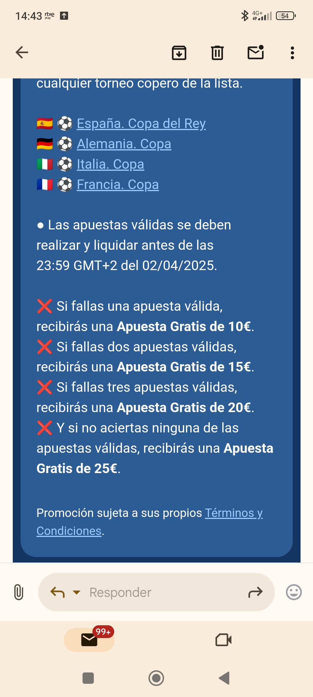 El importe máximo de la Apuesta Gratis será de 10€ y solo podrá recibir una en esta promoción.