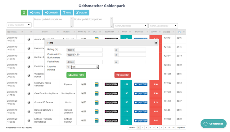 Hola @david , ¿vais a arreglar las cuotas de GoldenPark? Ya lleva bastante tiempo en el cual als cuotas del oddsmatcher no son correctas...