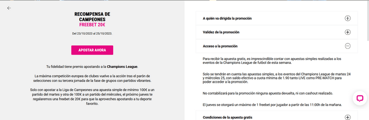 Bueno, me arriesgué apostando 100€ al nápoles y la gané, asi que haciendo otra el día de hoy ya me salen las ganancias para recibir la freebets de 20€.