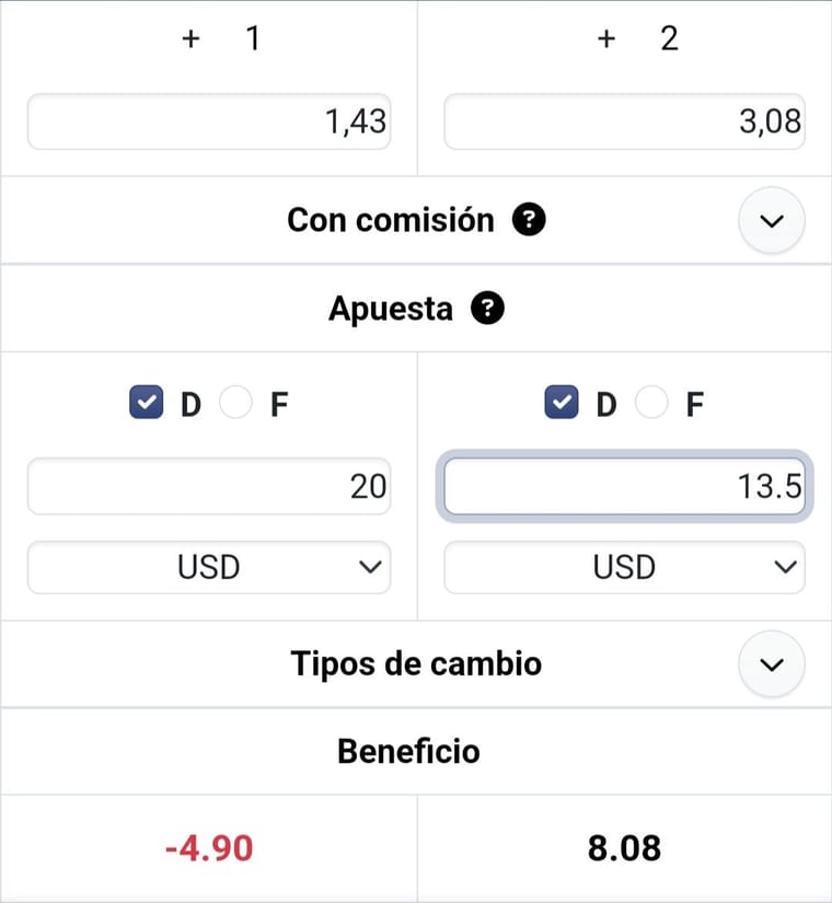 Cada uno que haga como vea, a mí me va más rápido con un excel/calculadora y tabla de equivalencia. Luego busco la cantidad de riesgo que aparece en la calculadora en el Exchange.Si se ha cogido a 3,40. La segunda y tercera es a 1,22 y 1,21 pero también puedes hacer una más alta con muy rating como el Sporting de Braga 1,43/1,48 que es equivalente a 3,08.