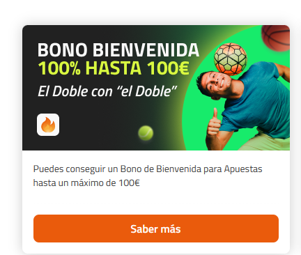 100% deposito hasta 50€ (Rollover x6) + 20€ apuesta segura.