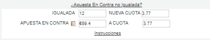 por ejemplo, de esta apuesta se igual solo 12 EUR, entonces hago clic donde dice Apuesta en contra no igualada?
