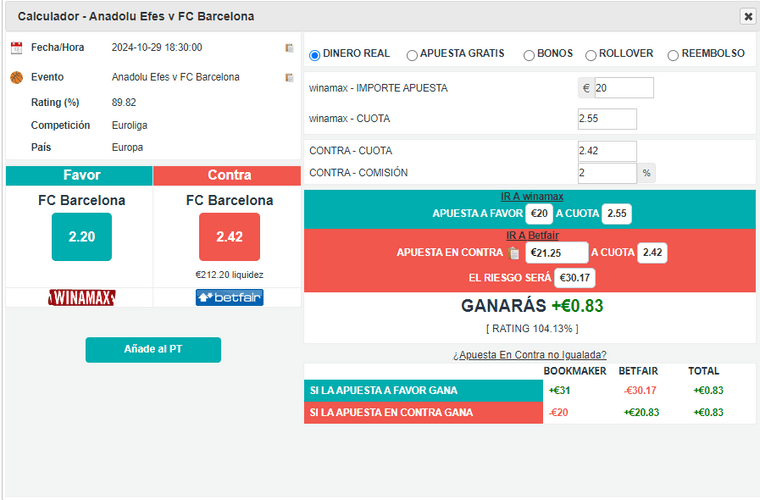 Es parecida al evento del Monopoly, no? Si ganamos en Winamax, debemos poner las perdidas con la cuota real.