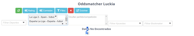 Hola, no funciona el oddsmatcher de Luckia, ni de Dazn ni de Bet777, esto es un desastre