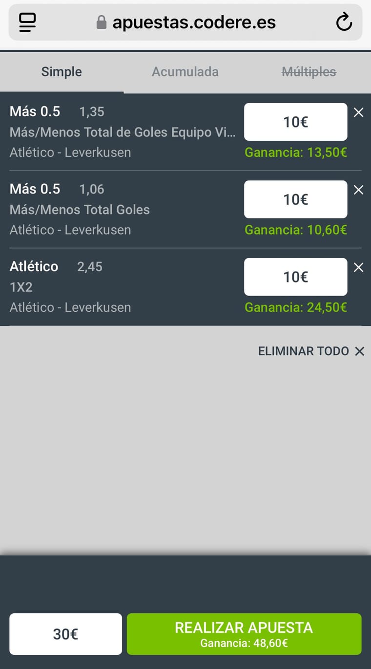 [20-21 Enero] Codere • Apuesta 20€ Crea tu Apuesta Atlético v B. Leverskusen - Recibe 5€ por cada Gol
