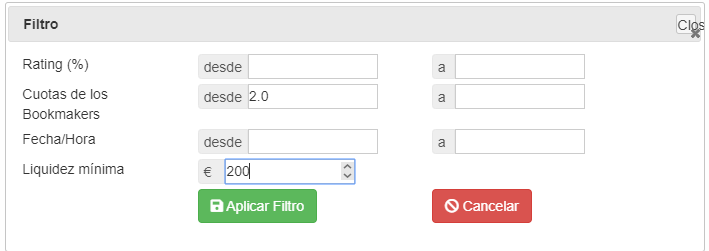 Modalidad dinero real --> 530€ a cuota 2.0 o superior