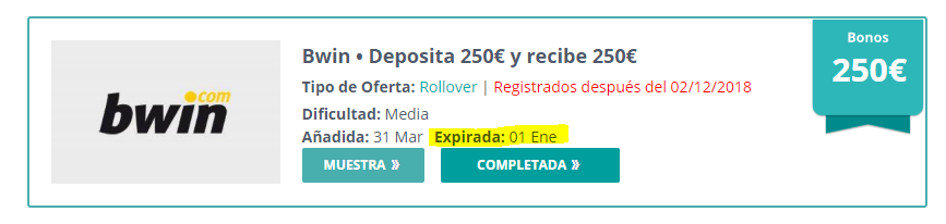 [Caducada][ESPAÑA] Bienvenida Bwin • Deposita 250€ y recibe 250€