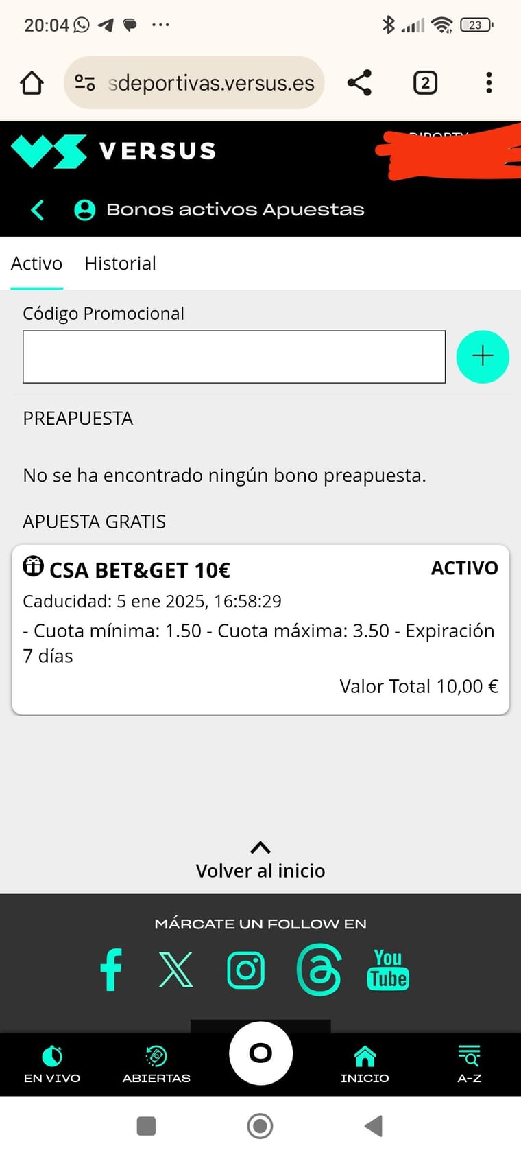 RE: [ESPAÑA][3 Junio] Marcaapuestas • Reembolso 50% hasta 10€ 1° Apuesta del Lunespublicado en Recurrentes Caducadas