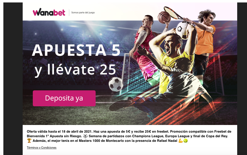 RE: [Caducada][ESPAÑA] Bienvenida Wanabet • Reembolso 100€ + Apuesta 5x20€ - Recibe 50€publicado en Bienvenidas Caducadas