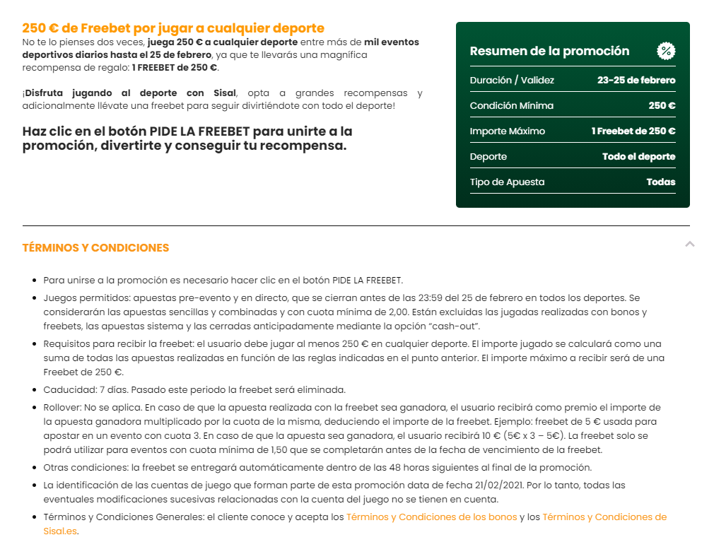 RE: SISAL Bono Recurrente 250€publicado en Exclusivas Caducadas