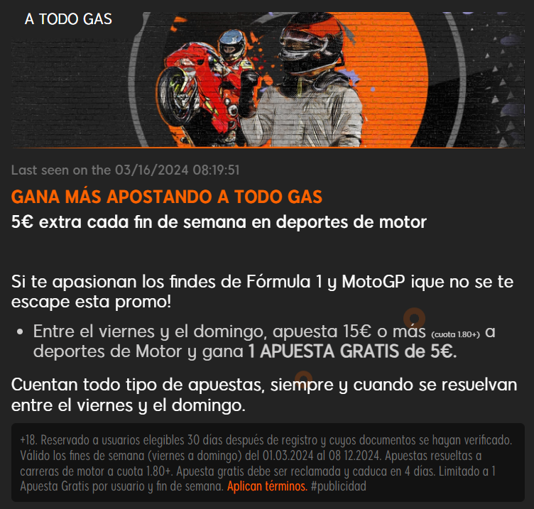 Apostar 10 euros a cuota 1,50 o superior en cualquier evento y recibe 10 para apostar gratis