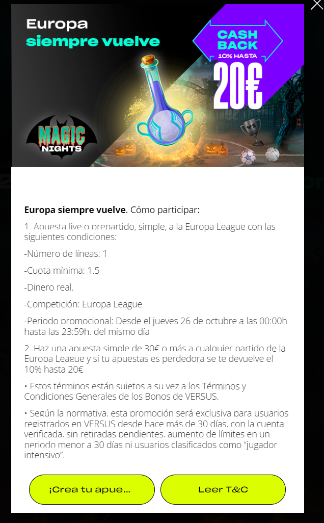 La apuesta debe realizarse con cuota mínima de 1.50 (1/2) para poder participar en la promoción.