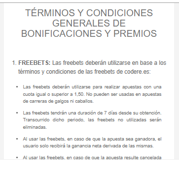 ¿Existe alguna limitación de ganancia? Estas bonificaciones están sujetas a las condiciones generales de los bonos, definidas en los Términos y Condiciones de los bonos. Para la liberación del bono de apuestas, el usuario deberá realizar apuestas por un montante total de doce veces el importe del bono y la conversión máxima estará limitada a una vez el valor del bono obtenido. Para la liberación del bono de casino o ruleta, el usuario deberá realizar apuestas por un montante total de ochenta veces el importe del bono y la conversión máxima estará limitada a dos veces el valor del bono obtenido.