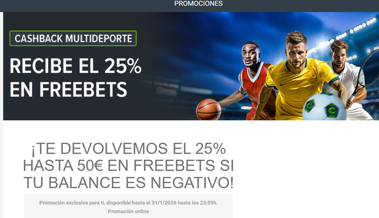 • CODERE: TE DEVOLVEMOS EL 25% HASTA 50€ EN FREEBETS SI TU BALANCE ES NEGATIVO